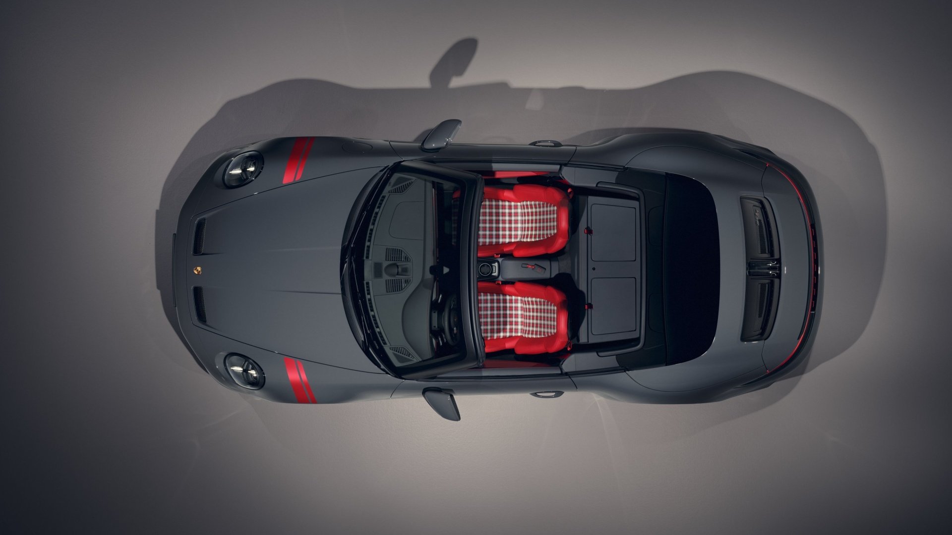 The GT3 S/C also draws inspiration from lightweight specials such as the Porsche 911 S/T, using carbon fibre and weight-saving measures to offset the challenges of its open-top design.