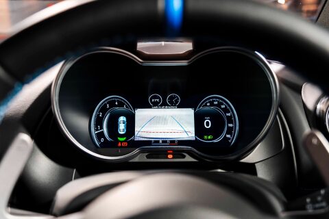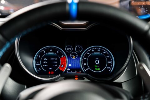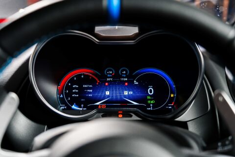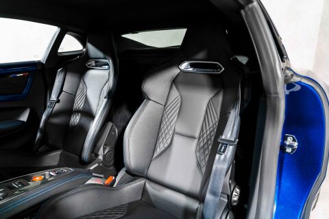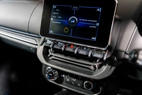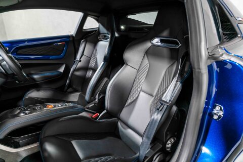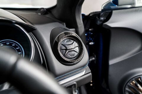 Inside, the car is equipped with a Titanium Black Leather Interior. The Sabelt comfort seats are both indulgently comfortably and super supportive whilst offering that nod to racing pedigree that Sabelt is known for. There’s a lightweight Focal Sound System present, along with floormats that include the ‘A’ Alpine emblem in a blue stitch. Finishing off this cabin is the Glossy Carbon Fibre style trim, that breaks up the other cabin materials brilliantly.