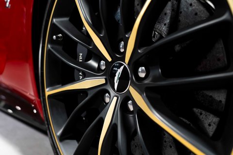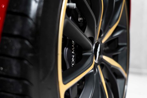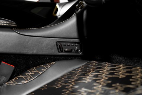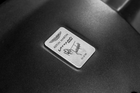 A standout feature of this car is the highly sought-after Villa D’Este Package, specified at a cost of £16,000 from the factory. Named in tribute to the original show car revealed on the shores of Lake Como, this package adds gold-finished exterior badges, wheel spokes and side strakes, along with gold detailing to the interior switchgear and dashboard vents. Completing the package is a signed engine plaque bearing the signatures of Andrea Zagato himself and Aston Martin Chief Creative Officer Marek Reichman.
