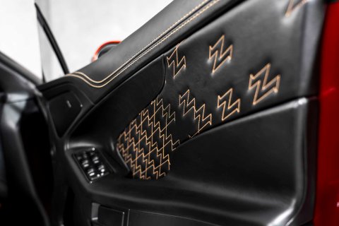 The interior is trimmed in black leather with extensive hand-stitched gold detailing, including the distinctive Zagato “Z” motif stitched throughout the cabin and extending into the headlining. Among Lava Red examples, this car stands apart as the only one offered with this particular interior specification; many others were finished with a more ‘common' black and red contrast leather. The gold stitching is believed to have been specified on only a very small number of cars, making this interior exceptionally rare. Crucially, the gold detailing mirrors the Villa D’Este accents perfectly, creating a cohesive and highly considered specification that enhances both desirability and collectability.