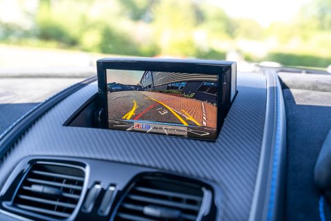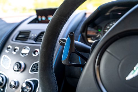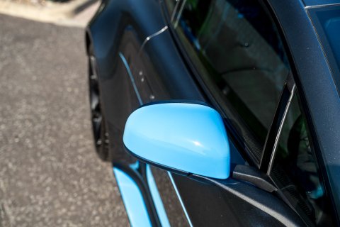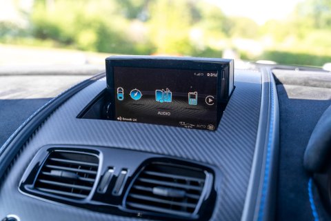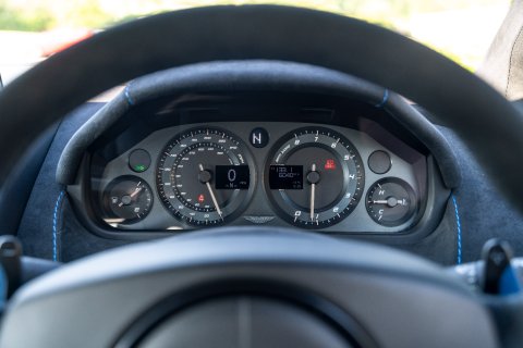 Our example is finished in the striking Magnetic Silver Metallic, and is complimented by the Aston Martin 'Halo' graphic pack in Flugplatz Blue which contrasts perfectly against the paintwork. Inside, it boasts a Pure Black Alcantara along with Spectral Blue and Black contrast stitching throughout the cabin.