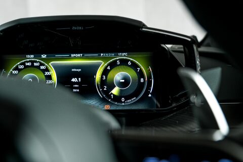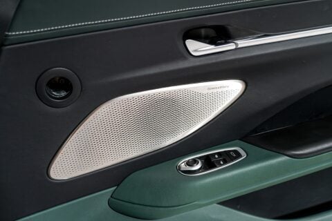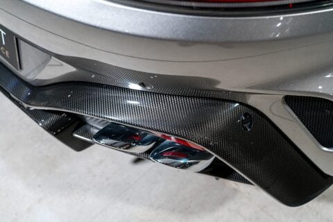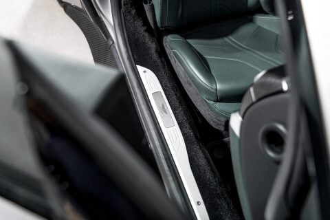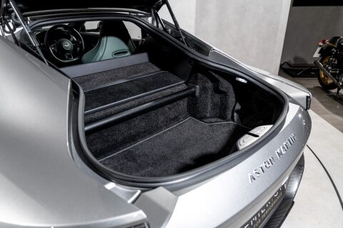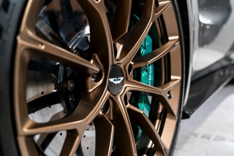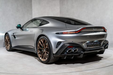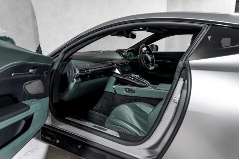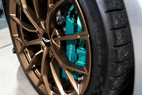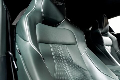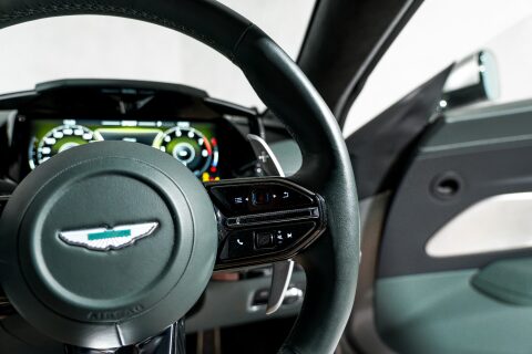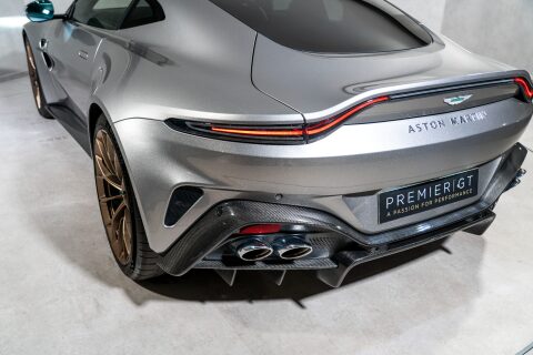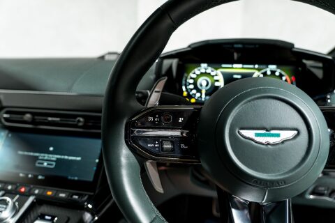 Featuring over £60,000 in optional extras and covered by an Aston Martin warranty until June 2027, this Vantage is finished in Signature Aluminite Silver Metallic over a striking Forest Green and Eifel Green Duotone Inspire Sport interior, complemented by a Bang & Olufsen sound system, carbon ceramic brakes with AM Racing Green callipers, and extensive 2x2 Twill Carbon Fibre detailing including the Gloss Lower Exterior Pack, Satin Centre, Upper, and Lower Trim Inlays, and Gloss Carbon Fibre Roof; further enhanced by 21-inch Y-Spoke Forged Wheels in Satin Copper Bronze, presenting door handles, privacy glass, contrast stitching, heated sports steering wheel, smoked tail lights, umbrella with holder, first aid kit, stolen vehicle tracker, and extended front-end PPF.