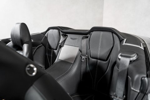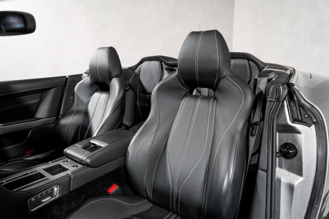Open the beautifully sculpted Volante roof and you’re welcomed into an exquisitely crafted cabin finished in Obsidian Black Caithness leather, complemented by Silver interior stitching and a Tailors Grey Rokona headliner. The Obsidian Black leather steering wheel, Piano Black facia trim, and exclusive Obsidian Black facia Virage logo further elevate the interior, delivering the unmistakable sense of occasion for which Aston Martin is renowned.
