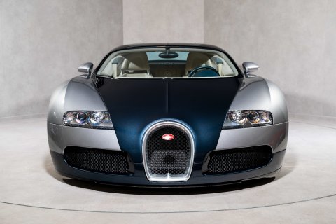 We are delighted to offer for sale of this very rare sub 1,000 mile UK supplied Bugatti Veyron 16.4. Finished in Polar and Pearl Metallic Two-Tone Paint with an Azzuro Blue and Silk Leather interior, this perfectly presented Veyron was delivered new to its original UK owner in 2008. It was later purchased in 2009 by a very well-known private collector and placed into his extensive collection where it resided amongst his other sensational cars before being recently acquired by Premier GT.