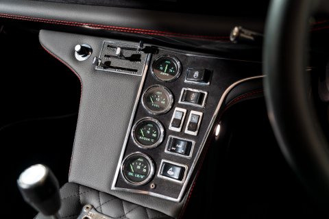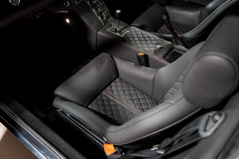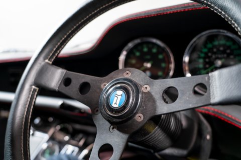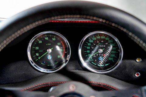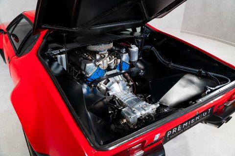 The exterior is finished in a Red & Black Combo (similar to the base LeMans Race Car) and complemented by the Gold “Pantera” Side Decals and Gold-painted Campagnolo Wheels. The interior has been fully re-upholstered to a beautiful Jet Black Leather Interior with Red Stitching. The glass panel between the cabin and engine bay means that wonderful engine can be observed in action. In addition to this, it has also undergone a full bottom up restoration carried out by the team at Steve Gilbey Classics, who are known for their love of the De Tomaso.