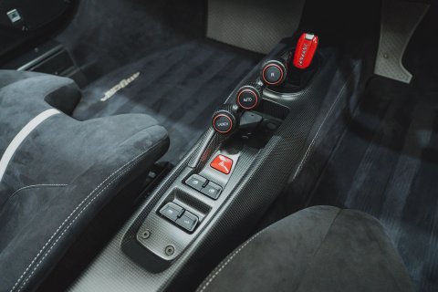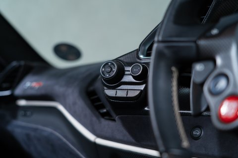 Inside is just as incredible, but with even more thought about the components needed to continue this amazing example. The cabin of the Pista itself is dedicated to simplicity in pure racing style. There is extensive use of Alcantara and Carbon-Fibre to bring both function and exceptional form. This particular car has Matte-Finish Carbon Fibre throughout, Blu Scuro Alcantara with contrasting Grigio Chiaro elements and a Bianco Italia dreamline along the Shift Paddles.