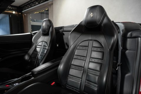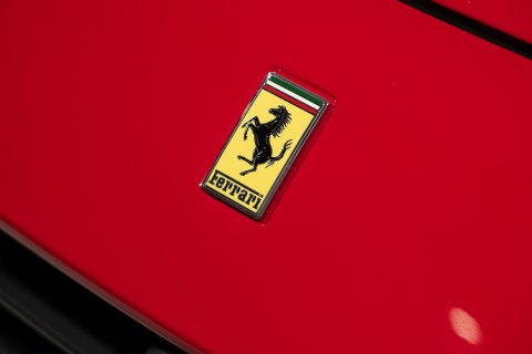 The exterior is finished in the most desirable colour, Ferrari Rosso Corsa, with Scuderia Ferrari Shields on the front wings and Dark Painted 20-inch Forged Alloy Wheels with Giallo Modena Brake Callipers. It also has the optional Black External Pillars and Front and Rear Parking Cameras for effortless parking.
