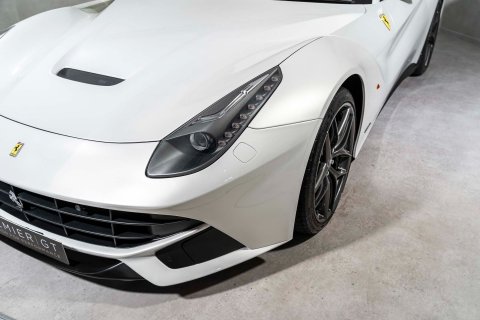This example is presented in the highly desirable 4-Layer Bianco Italia paint, a deep multi-stage pearlescent finish that accentuates the car’s dramatic surfacing and flowing aerodynamics. In natural light, the paint reveals incredible depth which perfectly complements the F12’s sculptural form.