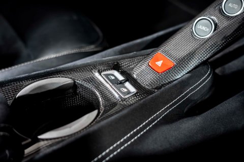 Inside, this example has been appointed with the Carbon Fibre Driver Zone with LED shift lights, alongside Carbon Fibre Central Bridge, Dashboard Inserts, Cup Holder.