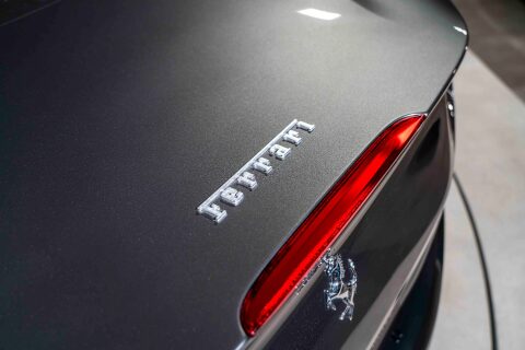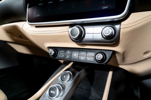 Our example is finished in Grigio Silverstone. Inside, it boasts a Sabbia Leather interior along with Nero stitching throughout the cabin.