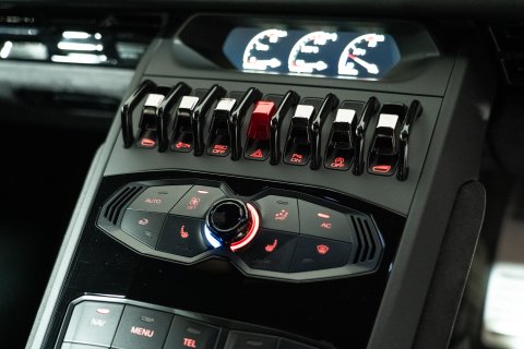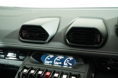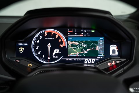 Inside is as plush and refined as you can get with a Huracan. Cabin materials ensure a cosseting and comfortable environment all finished in a mix of Nero Leather & Alcantara, pulled together by contrasting Blanco stitching and a hexagonal pattern running the centre of the seats. You’ll find gloss black trim around the centre console, steering wheel & door handles, ensuring all the touch points exude class and sophistication. It’s a fantastic place to be and this example has been incredibly well looked after.