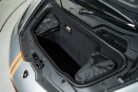 This stunning supercar is finished in the beautiful satin Grigio Nibbio, complimented by a dual Orange stripe & Black 20-Inch alloy wheels, with Orange Brake Callipers. You’ll notice Avio-specific logos imprinted on the doors, and these represent Lamborghini’s first supercar launch in 1963, and a target as a nod to aeronautics.