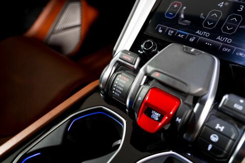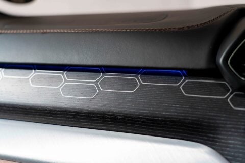 Inside, the cabin is finished in Terra Asia, creating a warm and sophisticated environment. This exceptional interior is elevated by elegant Leather Comfort Seats providing perfect support during spirited driving while ensuring long-distance comfort. The Heated Steering Wheel wrapped in premium materials delivers the ultimate tactile experience in all conditions. An Ambient Lighting Package creates a customisable atmosphere that transforms the interior after dark, a Glass Panoramic Roof floods the interior with natural light, while the Advanced Bang & Olufsen Sound System produces a sound like no other.