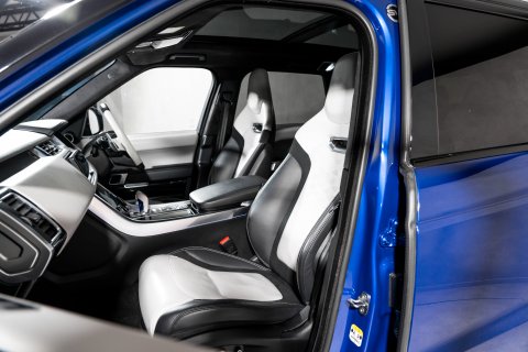 Now available for viewing at our West Sussex showroom is this 2019 (69) Range Rover Sport SVR, finished in the iconic colour of Estoril Blue and covering 26,870 miles from new.
