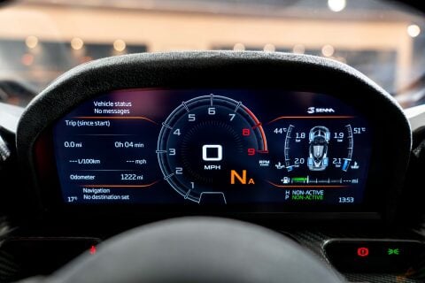 The Senna's carbon fibre monocoque construction results in a dry weight of just 1,198kg's, achieving an extraordinary power-to-weight ratio that rivals dedicated race cars. Every surface has been sculpted by aerodynamic necessity rather than aesthetic convention, resulting in dramatic bodywork that generates up to 800kg's of downforce at 155 mph.