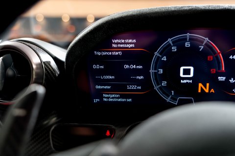 The active aerodynamics system constantly adjusts front and rear wings, along with an active rear spoiler, to optimise performance for any driving condition. The suspension features McLaren's RaceActive Chassis Control II with adaptive dampers that can be adjusted for different track conditions, while carbon-ceramic brakes provide phenomenal stopping power.