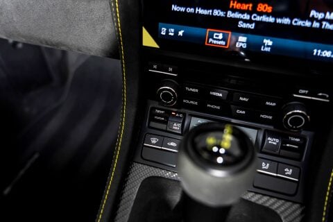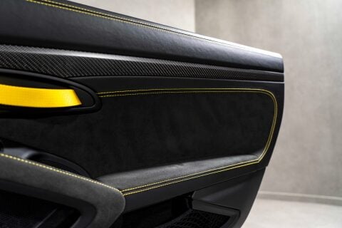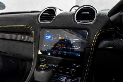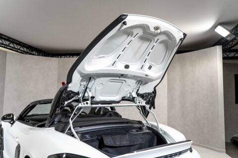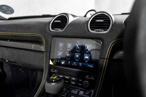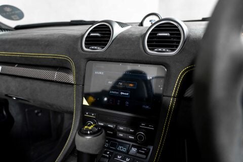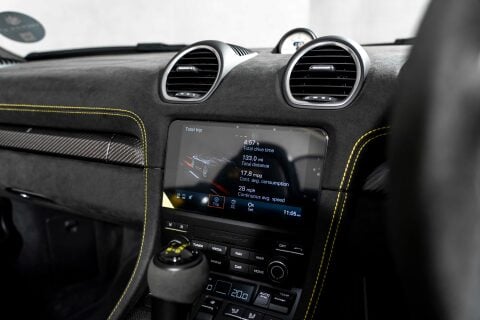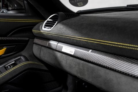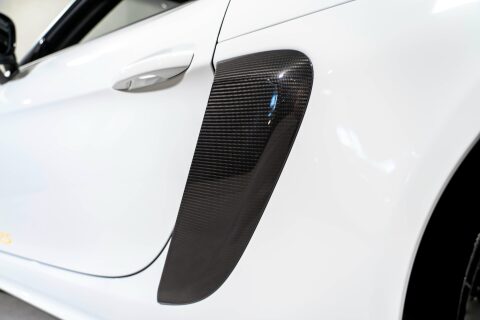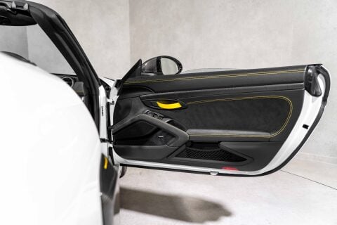 Presented here, in White Paintwork over a subtle yet striking Black Leather and Black Microfibre Interior, along with a blend of Racing Yellow decorative stitching throughout. To compliment the paint, the Satin Black 718 GT4 RS Wheels and Racing Yellow decals round off the car perfectly. Equipped with the all important Weissach package, which gives you a Carbon Fibre Bonnet with Partial Painting, Exterior Mirror Upper Trims, Cooling Air Intake Trim Behind Driver and Passenger Door, Process Air Intakes, Housing to Upper Brake Light, Trim for Roll over bar and Gurney Flap located on the rear spoiler. Plus, Titanium Tailpipes and 'Weissach Package' Embossed on the convertible roof. Moving onto the interior, the Upper Part of Dashboard in Race-Te, 'Weissach Package' badge on the Cup Holder and finally 'Weissach Package' Logo Embossed into the Headrests.