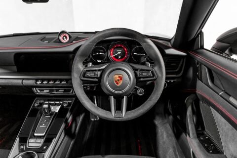 Inside, the Targa 4 GTS strikes the perfect balance between sporting intent and long-distance comfort. Race-Tex upholstery, GTS-specific trim, and supportive sports seats create an immersive driver environment, while advanced infotainment, premium audio options, and refined ergonomics ensure effortless travel on extended journeys. It is luxury, distilled through Porsche’s unmistakable driver-focused lens.