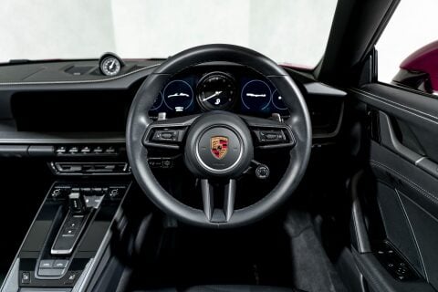 With its signature brushed-metal Targa hoop and effortlessly elegant roof mechanism, the 992 Targa 4S offers open-air motoring at the touch of a button - without compromising the rigidity, refinement, or security of a coupe. Beneath its sculpted rear deck sits Porsche’s 3.0-litre twin-turbo flat-six, delivering 444 BHP through an exceptionally precise PDK transmission. The result is a car that surges from 0–62 mph in just 3.8 seconds, yet settles into long motorway stretches with a calm, cultured composure.